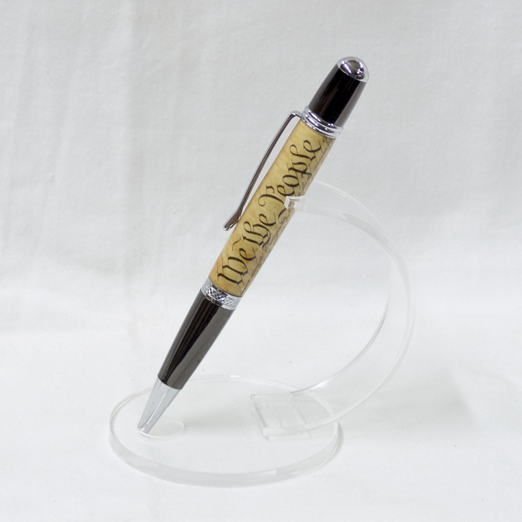 I made this pen by casting an image of the beginning of the US Constitution, "We the People" in clear resin and then polishing it to a smooth, glossy finish.